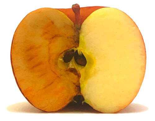 The oxidation process can be seen in an apple. If half an apple is left on the kitchen table, the white of the apple will turn brown after a while. Free radicals have attacked the healthy cells of the apple and oxidise their naturally occurring compounds, leading to browning. Antioxidants help prevent oxidation and destruction by protecting the cell membrane.